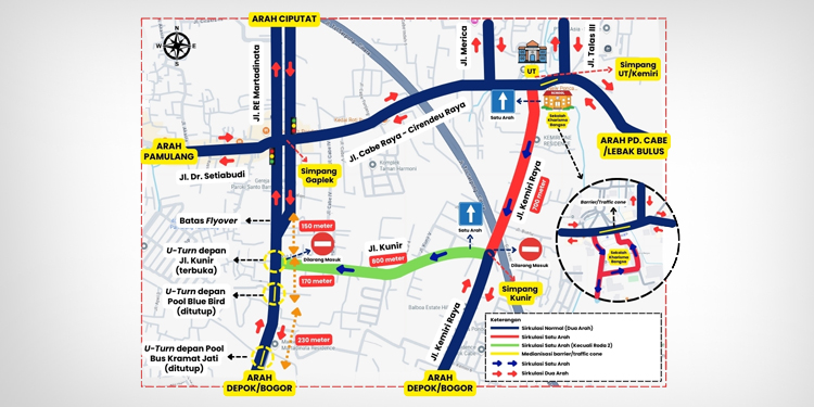 Sistem satu arah juga akan diterapkan di Jalan Kayu Manis Raya Segmen Simpang Kayu Manis – Simpang Kayu Manis 1 yang berlaku selama 24 jam.