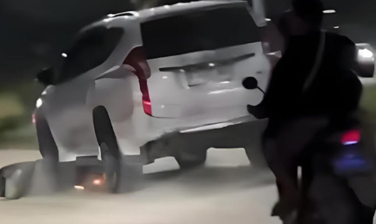 Dalam video yang beredar di media sosial, tampak warga berusaha menghentikan mobil Pajero yang masih menyeret motor di bagian kolongnya.