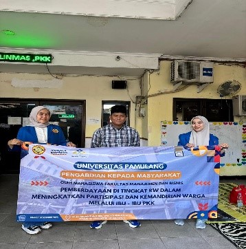 MAHASISWA Fakultas Ekonomi dan Bisnis Universitas Pamulang (UNPAM) telah sukses menyelenggarakan kegiatan Pengabdian kepada Masyarakat (PKM) sebagai wujud nyata implementasi Tri Dharma Perguruan Tinggi.